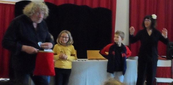 Dans le dernier tableau il y avait des chiffres arabes et des chiffres romains. Les comédiens ont choisi deux élèves. L’un avec des chiffres arabes et l’autre avec les chiffres romains. Les comédiens ont dit des nombres puis les enfants devaient les écrire.
